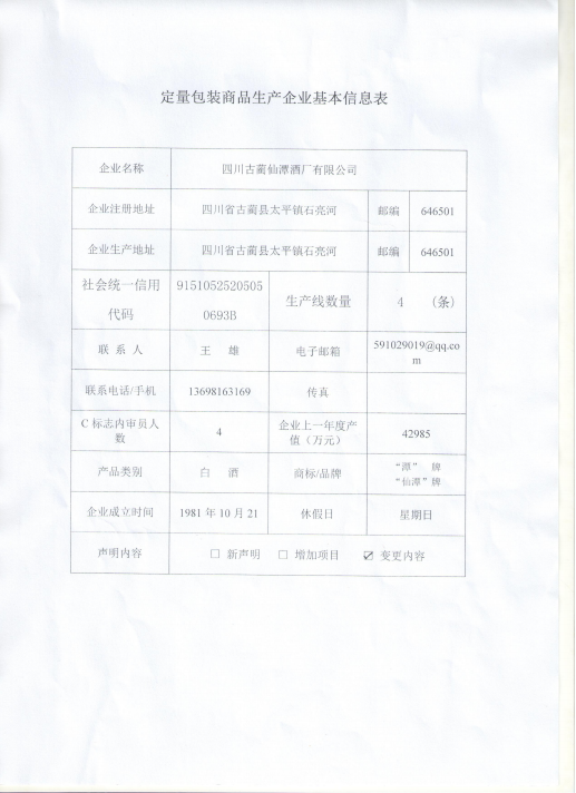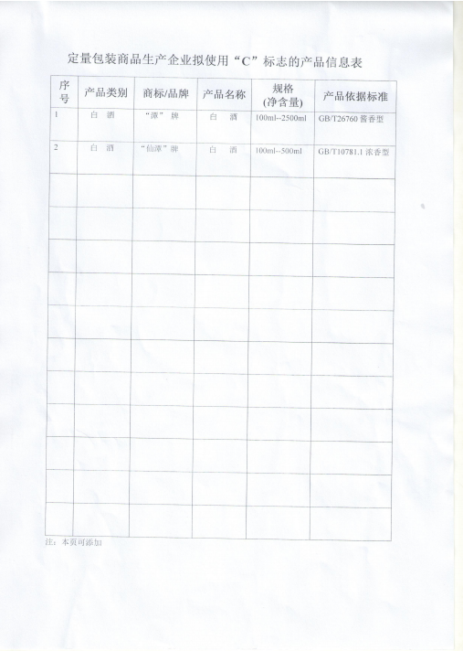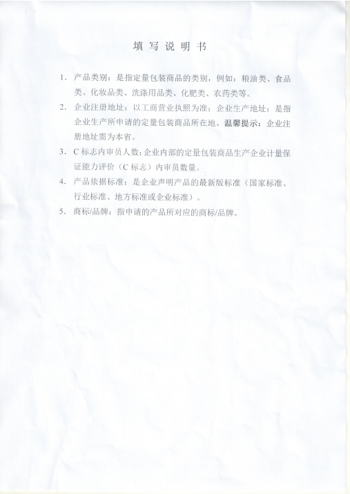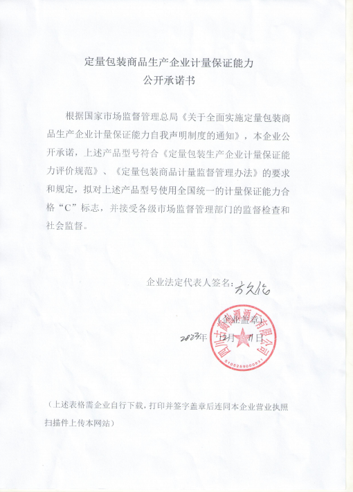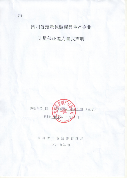四川省定量包装商品生产企业—计量保证能力自我声明