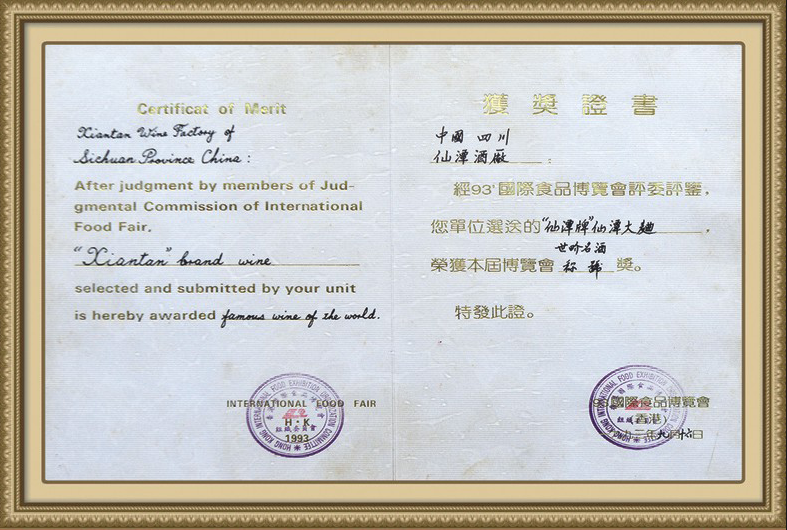 第93届国际食品博览会上仙潭牌仙潭大曲荣获"世界名酒"称号
