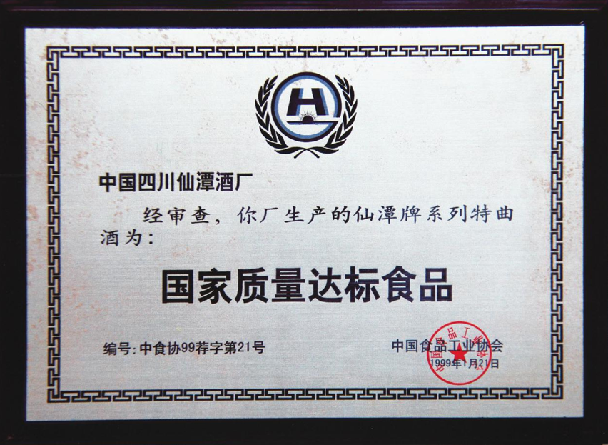 奇异果体育app网页版生产的仙潭牌系列特曲酒被中国食品工业协会认定为国家质量达标食品