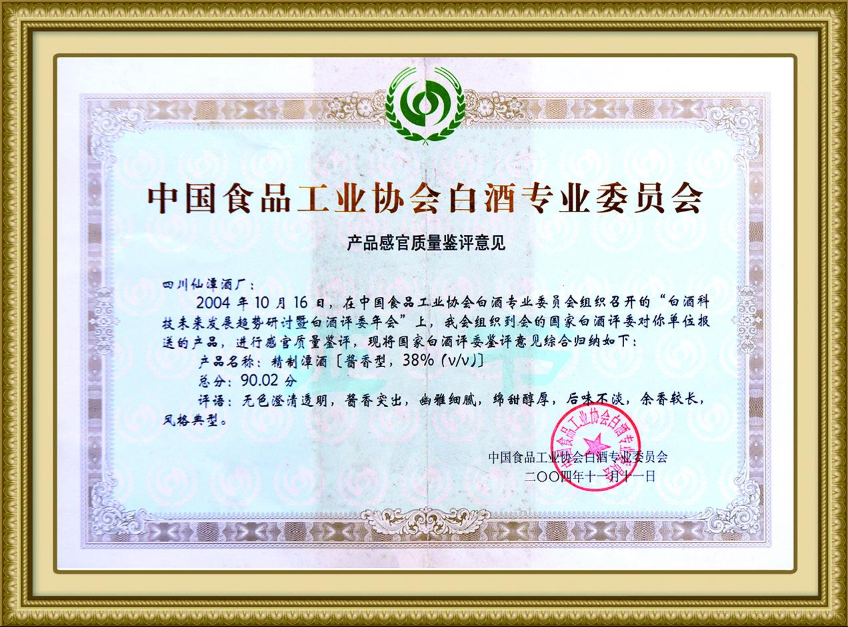 奇异果体育app网页版生产的精制奇异果体育app网页版(酱香型38°)在中国食品工业协会白酒专业委员会召开的白酒评委年会上,产品感官质量鉴评获得了90.02分的好成绩