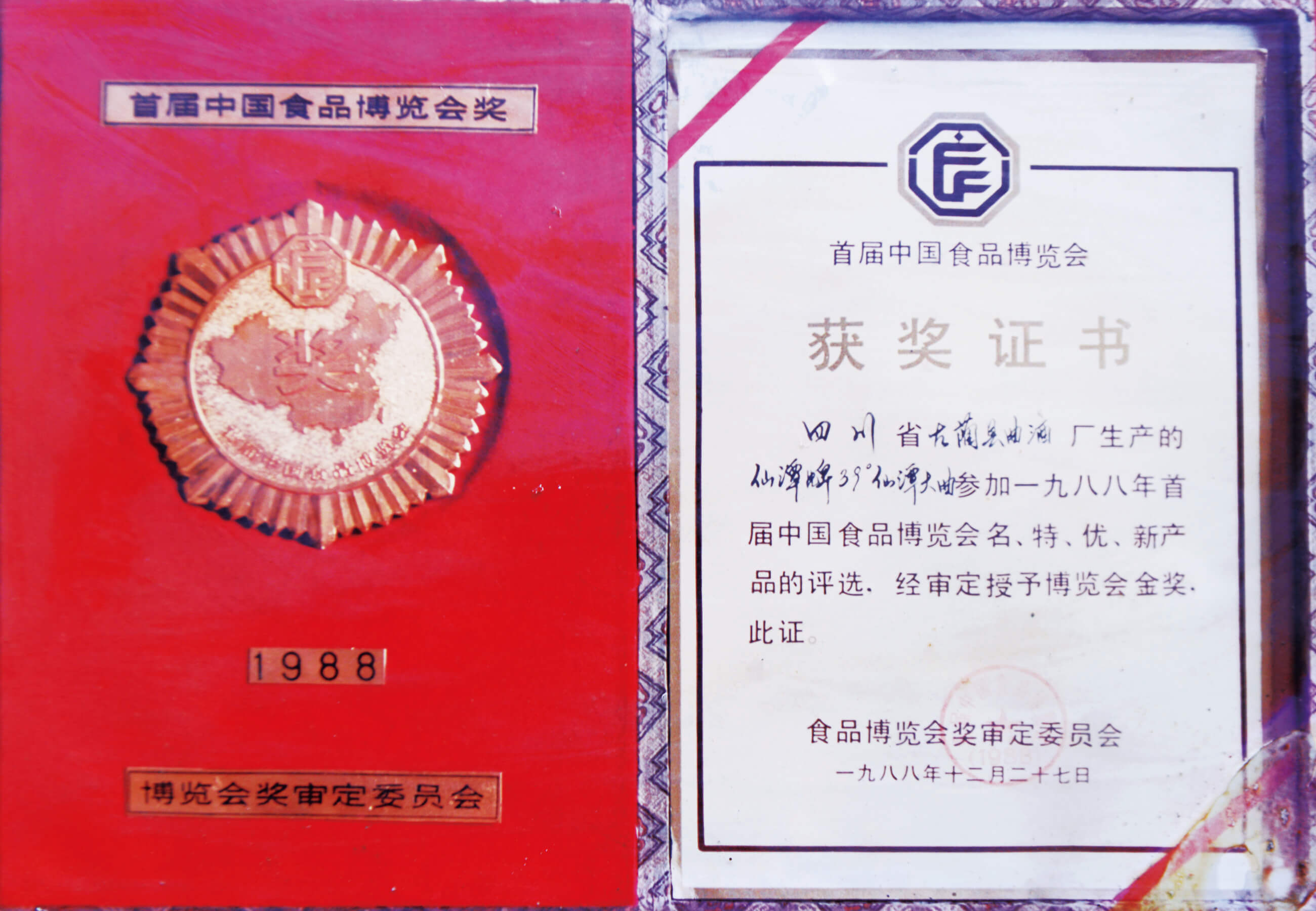 仙潭牌39°仙潭大曲、仙潭牌54°仙潭大曲荣获首届中国食品博览会金奖